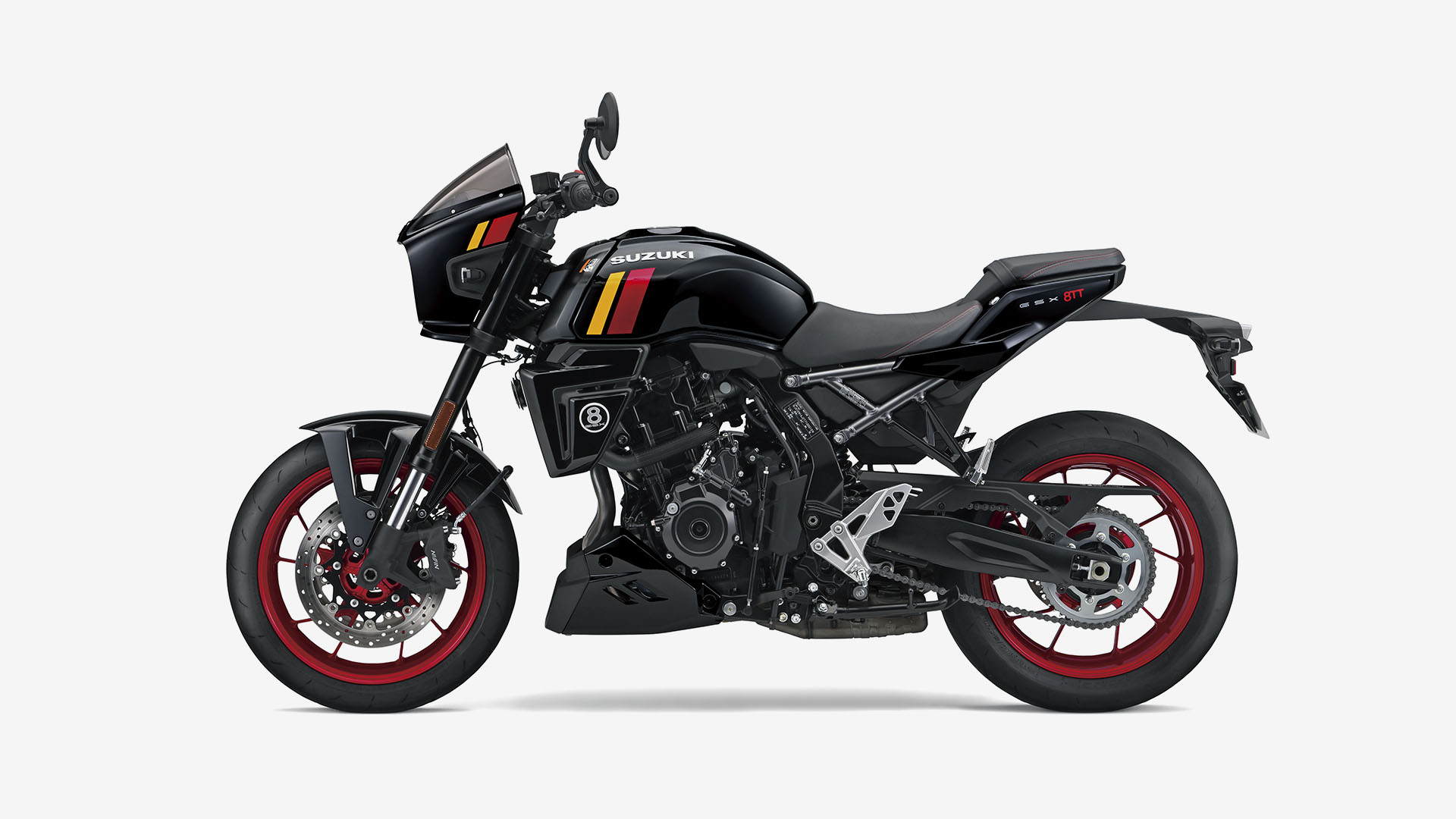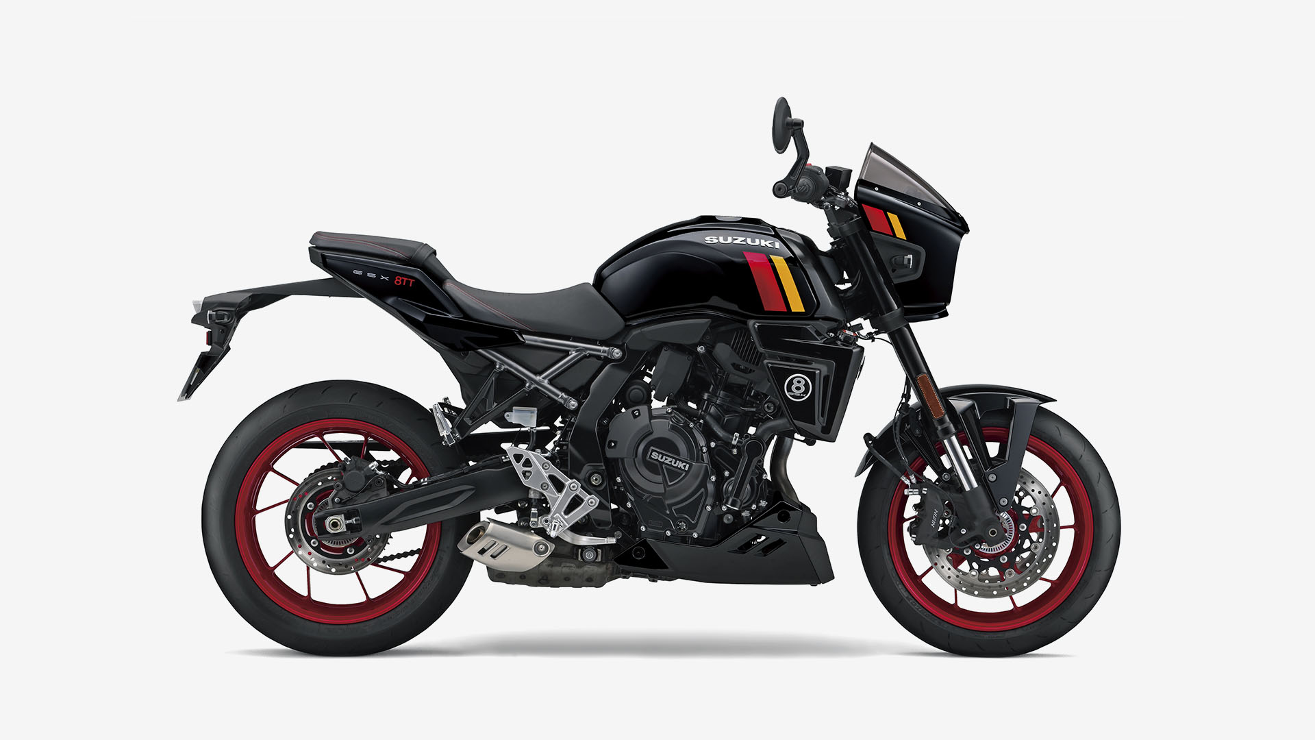 Con un faro redondo LED nostálgico, retrovisores en los extremos del manillar, asientos con diseño “tuck-and-roll” y un elegante depósito de 16,5 L, la GSX‑8T canaliza el encanto de la T500 “Titan” de la década de 1960. . En contraste, la GSX‑8TT añade un distintivo carenado de faro inspirado en las carreras y un bajo carenado que recuerda a las motos de carreras de carretera Suzuki AMA de la década de 1970, lo que le da un toque más deportivo.